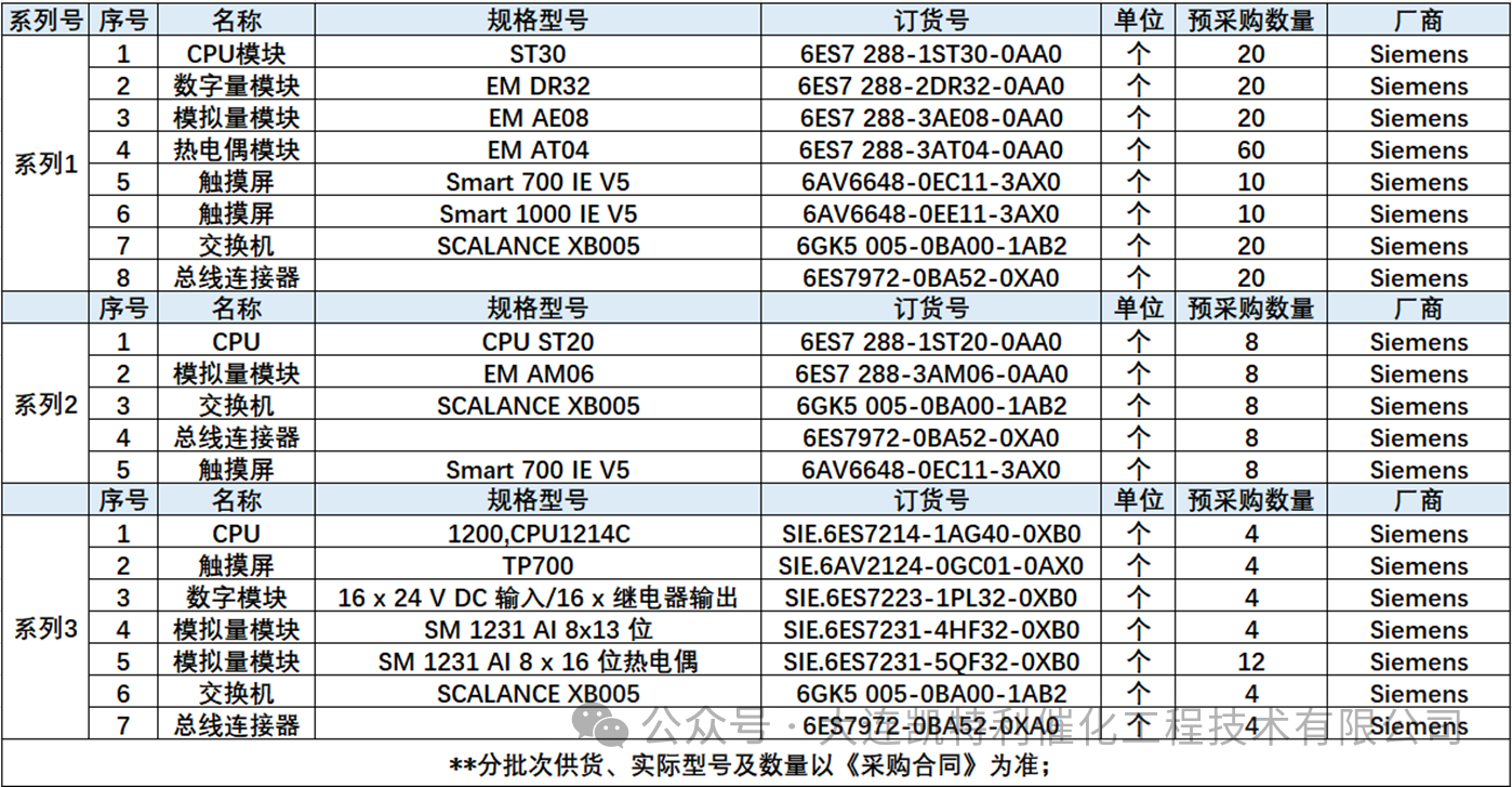 1. 項目名稱:大連凱特利催化工程技術有限公司 2026年度設備生產配件-西門子PLC采購