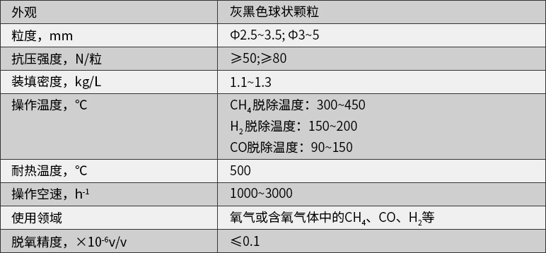 OC-2型氧化催化劑具有雙功能脫除雜質(zhì)機理:在有氧氣下氧與雜質(zhì)CH4、CO和H2反應(yīng)生成CO2和H2O;在無氧氣氛下催化劑本身提供氧與雜質(zhì)CH4、CO和H2反應(yīng)生成CO2和H2O。該氧化劑應(yīng)用靈活,有氧、無氧存在均可以達到脫除雜質(zhì)的目的,還具有脫除雜質(zhì)溫度低、精度深、耐熱性能好、使用壽命長的顯著特點。